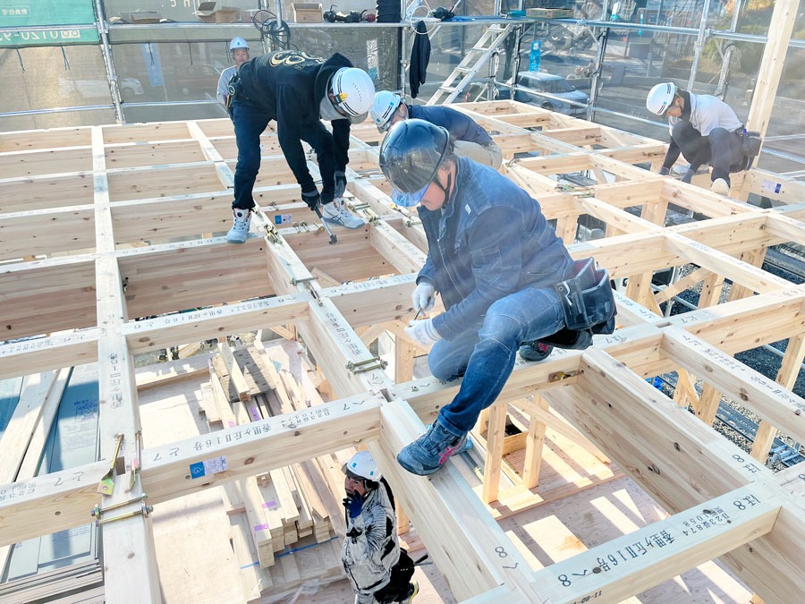 とある現場で出会った気さくで明るい大工さんに「うちで働いてみないか?」とお誘いをいただき、「楽しそう。職人ってかっこいい」と感じたことがキッカケとなり、大工の道を歩むことになりました。